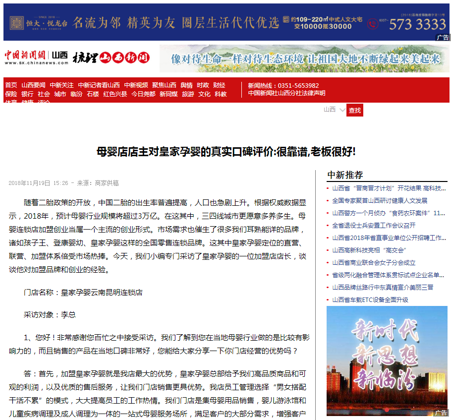1、您好 ! 非常感谢您百忙之中接受采访.我们了解到您在当地母婴行业做的是比较有影响力的,而且销售的产品在当地口碑非常好,您能给大家分享一下你门店经营的优势吗?